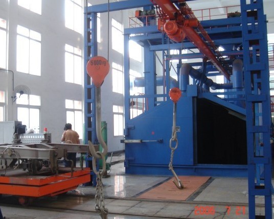 具體工藝流程如下:由上料→輥道輸送→拋丸機(jī)強(qiáng)化→輥道輸出→最后下料,即組成了一條鋼板清理拋丸機(jī)的生產(chǎn)線。